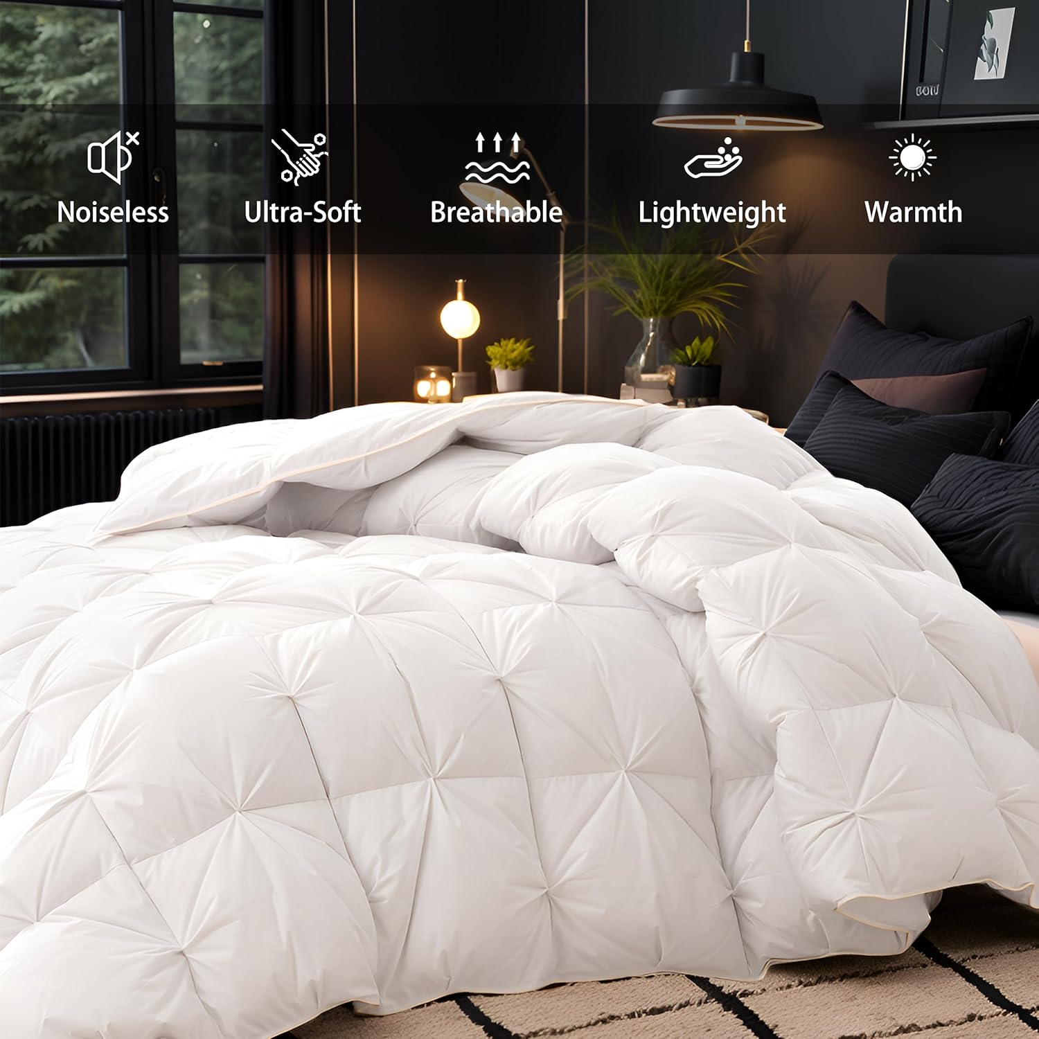 - All-Season Warmth: comforter provides the warmth for Spring,Summer,Autumn and Winter, keeping you cozy without overheating.The elegant pinch pleat design enhances the aesthetic appeal, making it a good addition to any bedroom, or hotel bedding comforter